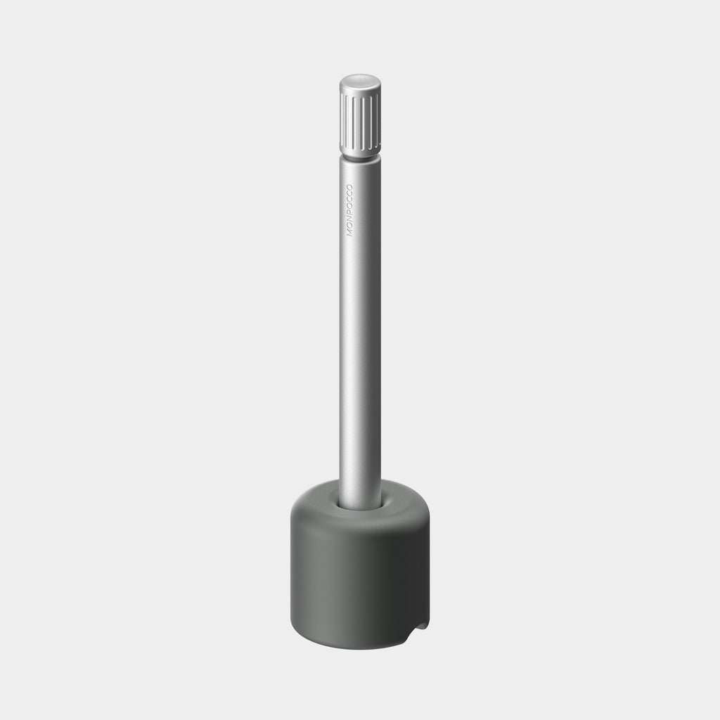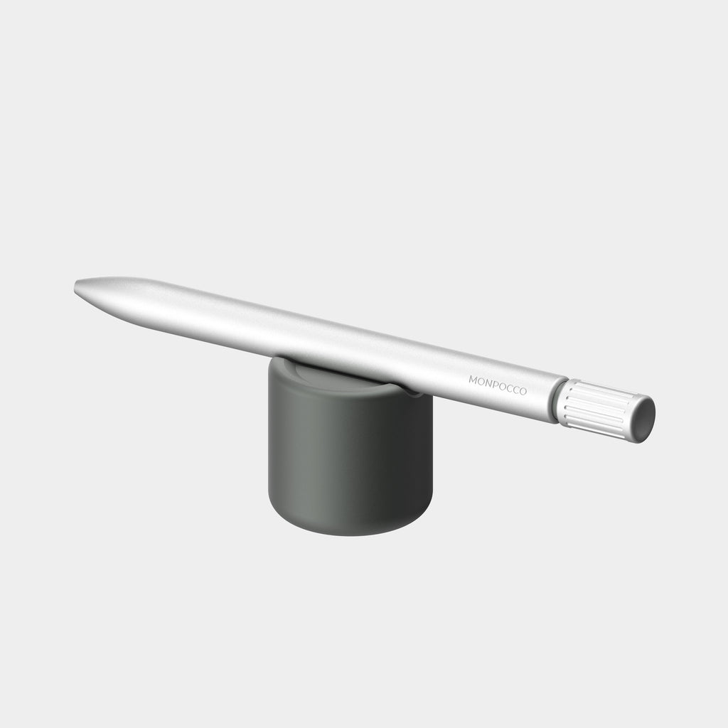Designed to complement the Dune Pen, featuring a vertical stand on one side and horizontal pen rest on the other. Machined from solid aluminium, carefully weighted and anodised to match the finish of your Dune Pen.
